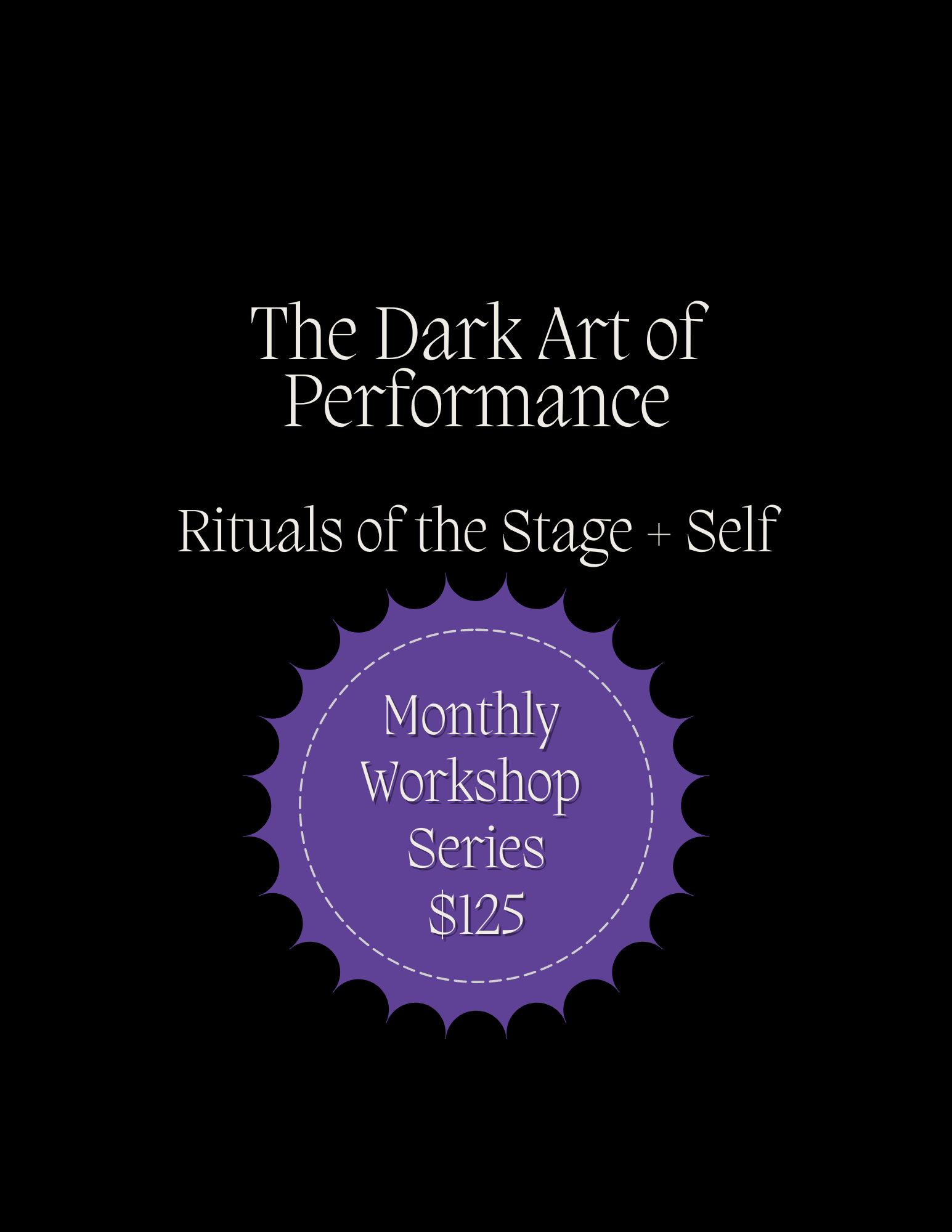 The Dark Art of Performance is a ritual-based workshop series exploring embodiment, stage presence, and transformation through butoh, performance art, costuming, and character creation. Each monthly session functions as a focused laboratory—working with movement, voice, visibility, and the body as an expressive vessel.